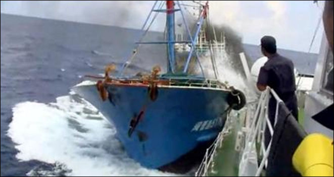流出したビデオ画面を見れば、明らかに中国漁船がエンジン出力を上げ、黒煙を吐きながら巡視艇にぶつかってきている。巡視艇は尖閣諸島海域で密漁中の漁船に停止命令を出していたもので、その背景には尖閣の島影も写っており、急膨張をつづける中国の近隣諸国に対する覇権主義の象徴的な証拠といってよいだろう。