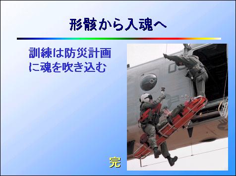 では、その危険な任務を失敗せずに遂行するにはどうすればいいのか。それは関係機関が相互に協力し合うこと、捕い合うことです。その根底には相互の信頼がなければなりません。この信頼関係を築いてゆくのが訓練にほかなりません。これが結論です。まず最初に、結論を申し上げておきます。