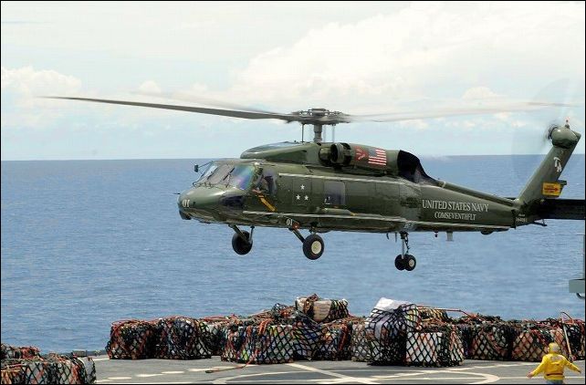 自衛隊は陸上、海上、航空のいずれも大小さまざまなヘリコプターを被災地に送りこみ、捜索、消火、重機搬送、救援物資輸送などをおこなった。念のために、自衛隊の本来の目的は自衛隊法第3条(自衛隊の任務)に定める通り、外敵の侵略に対する国土の防衛だが、大規模災害が起こったときは本来の任務を妨げない範囲において「災害派遣」がなされる。この場合、公共性,緊急性、非代替性という3つの条件が満たされなければならない。