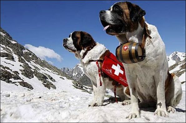 セント・バーナードは元来スイス原産の犬で、その昔アルプスの山中で雪の遭難救助犬として活躍、セント・バーナード峠の僧院では17世紀中頃から20世紀初頭までに2,500人の遭難者を助け、そこからセント・バーナード犬の名が生まれたという。この犬は救助にあたって、遭難者の体を温めるためのラム酒の樽をぶらさげていたらしい。